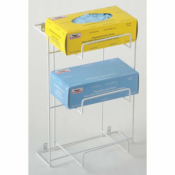 The top-dispensing PVC-coated steel dispenser is the quick-and-easy way to access and dispense your latex, vinyl, or nitrile exam gloves—upright position keep gloves from falling on floor. Holds 3 boxes and accommodates all brands and box sizes.